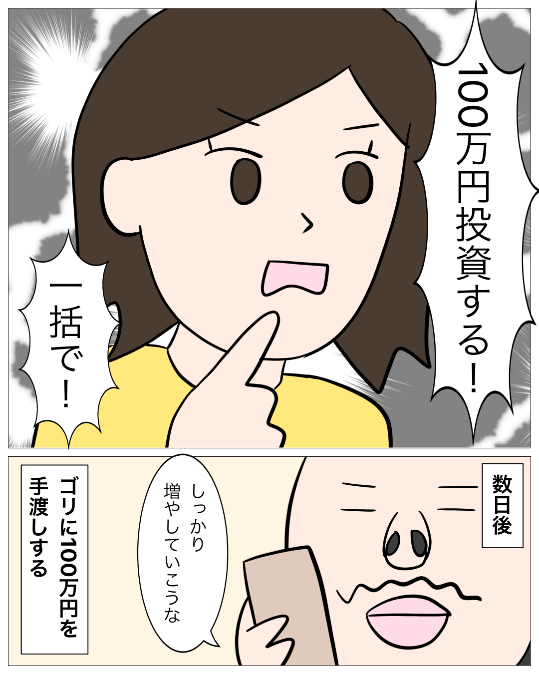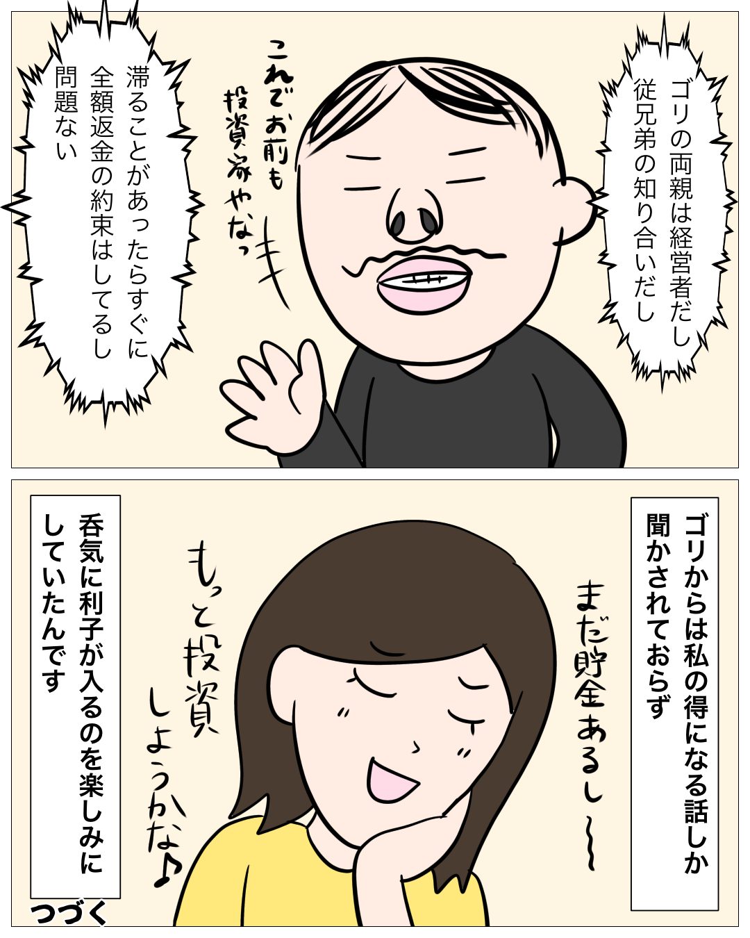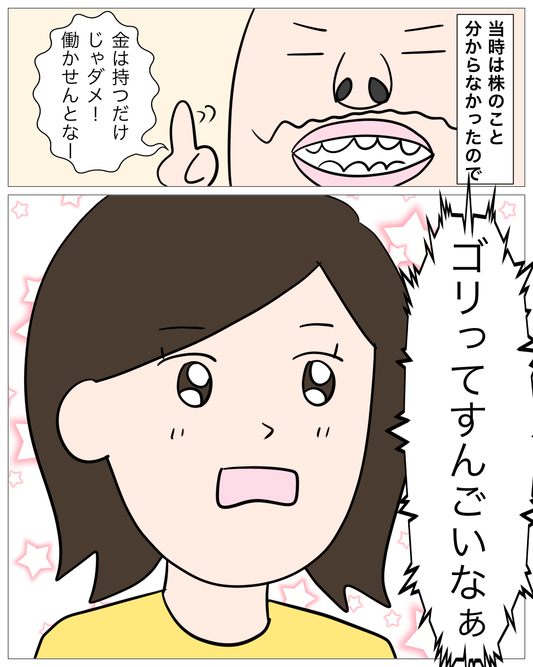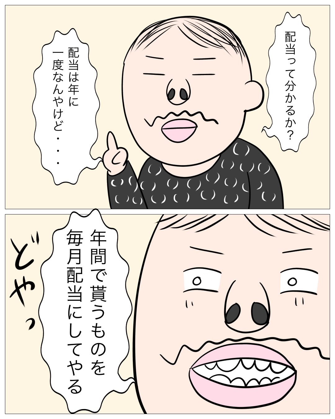 ↓前回のお話はこちら ↓1話目はこちら 配当金・・・ あとがき 雲行きが怪しくなってきました・・・ ゴリはなんて答えるのか? 次回もお楽しみに!