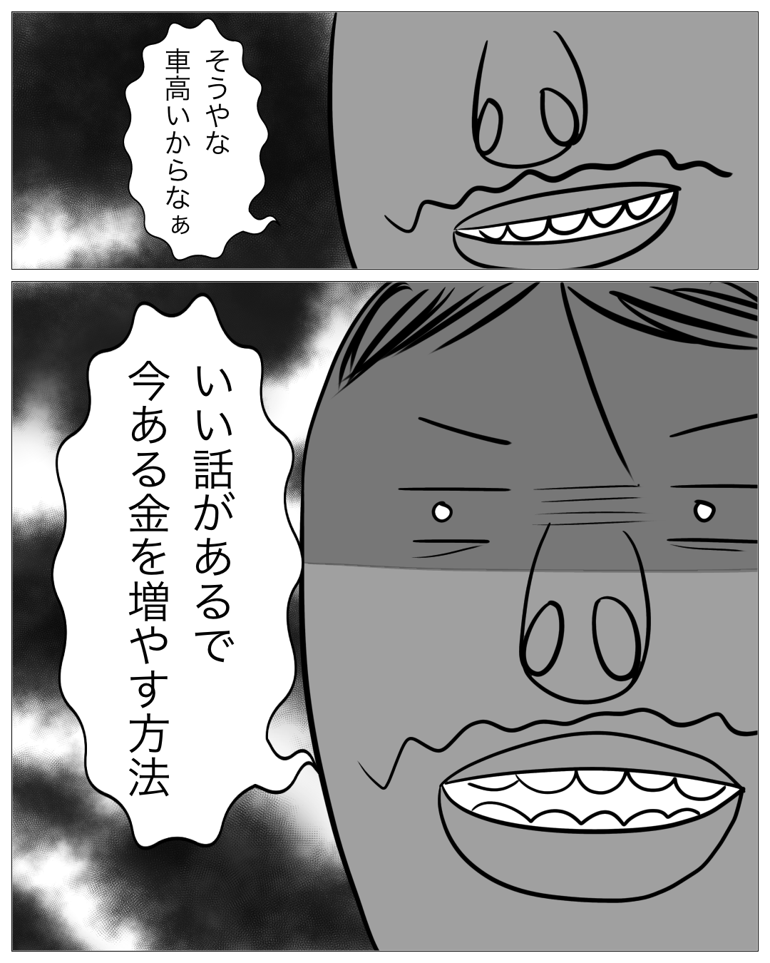 ↓前回のお話はこちら ↓1話目はこちら 怪しいゴリ・・・ あとがき ゴリの聞き出しがすごい! いよいよ詐欺師の顔が出てくる・・・! 次回もお楽しみに!