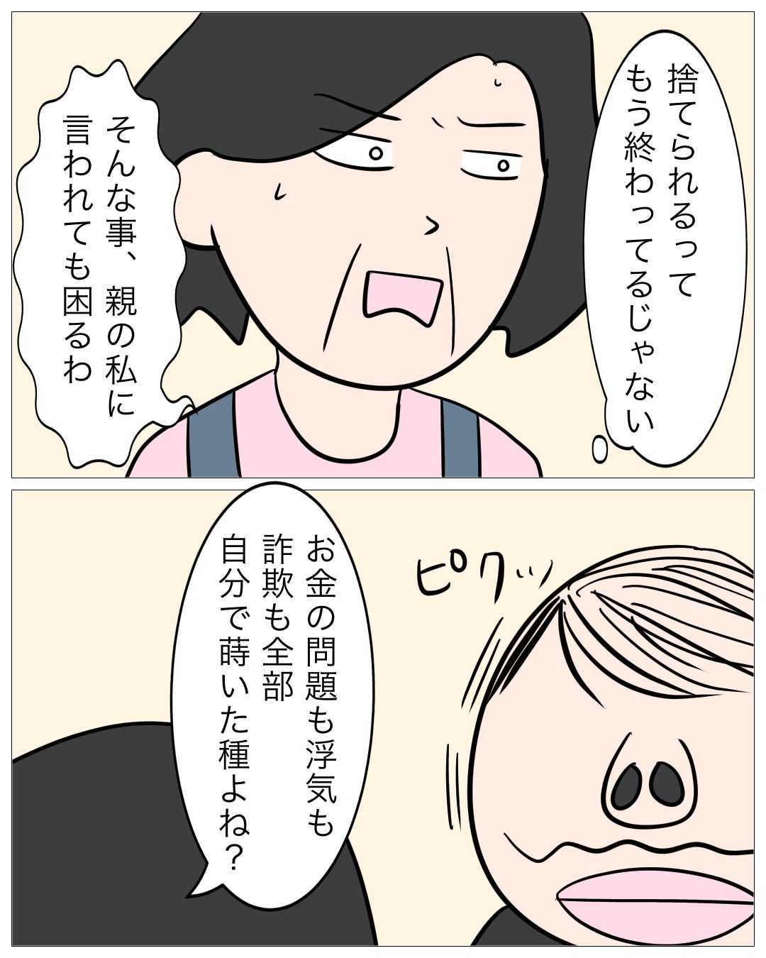↓前回のお話はこちら ↓1話目はこちら タチが悪い あとがき 最低で嘘しかないけど、お金は返してもらいたいのもあってなかなか切れない縁。 反省したふりもするから余計にタチが悪い。 次回もお楽しみに!