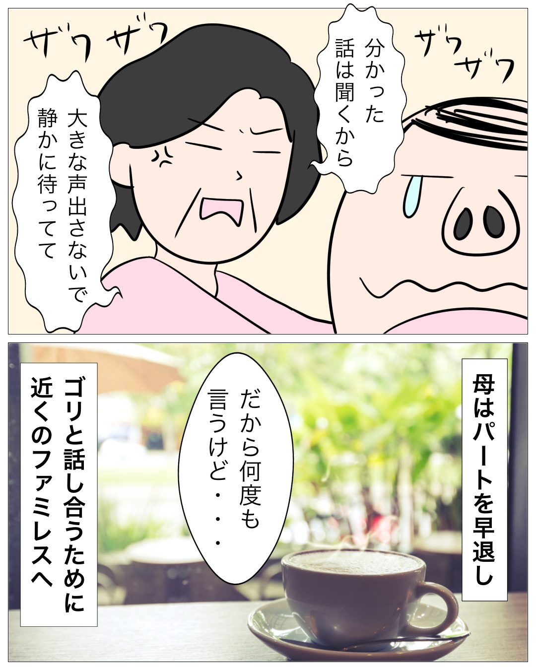 ↓前回のお話はこちら ↓1話目はこちら 脅し あとがき 実家に金をむしり取りに来たかと思えば、数時間後には母親のパート先に現れたゴリ! いきなり現れて恐怖しかない( ; ; ) この後どうなる? 次回もお楽しみに!