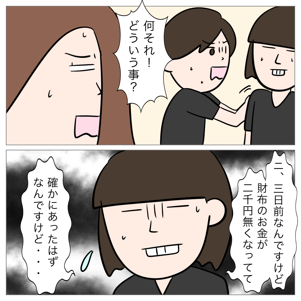 新ストーリースタートです! 男女トラブルが続いたので、今回は職場のトラブル話になります。 信頼していた職場内での窃盗事件。 誰が犯人なのか・・・ ぜひ当ててみてくださいね! 預かったお金がない! あとがき 職場内でお金が無くなるのって気持ち...