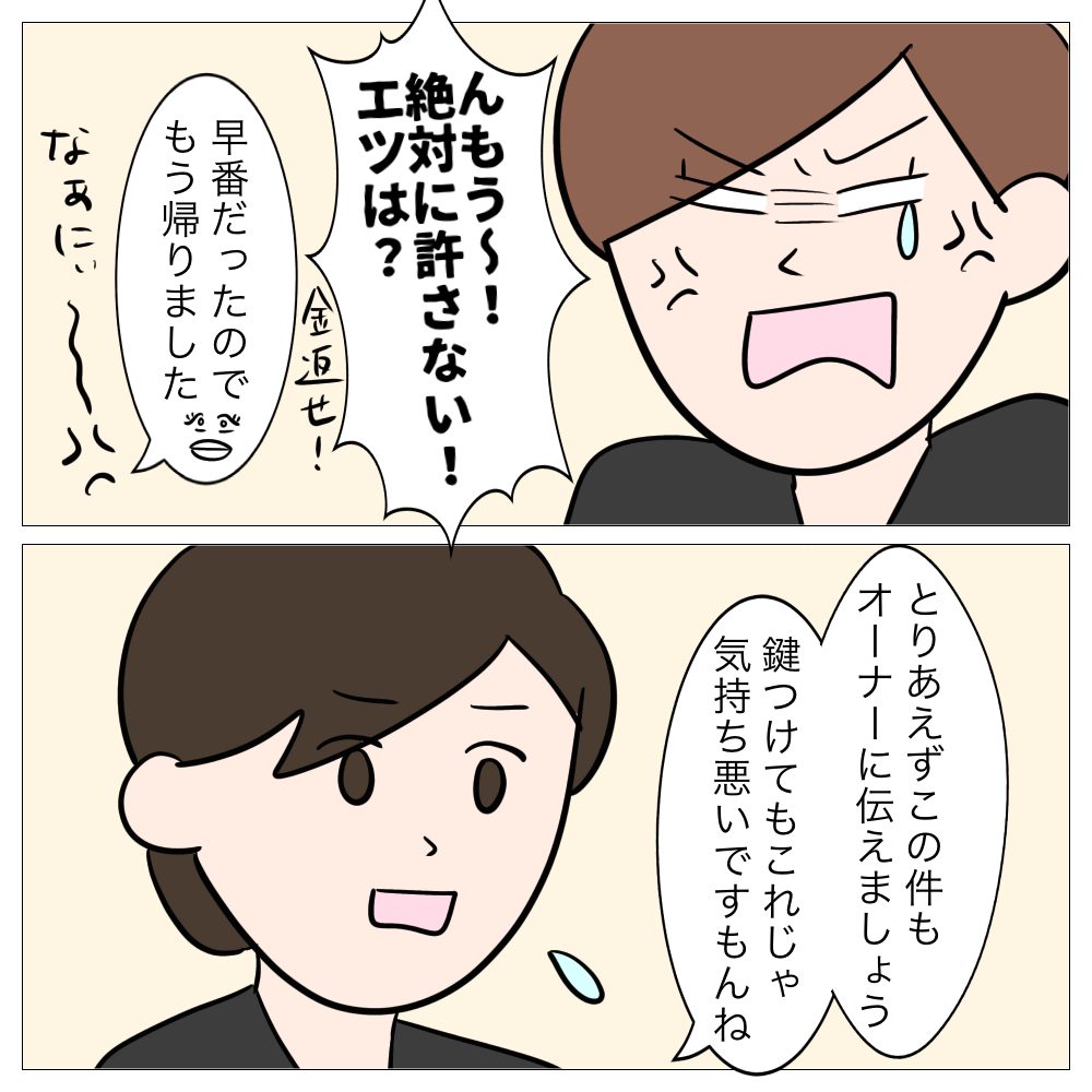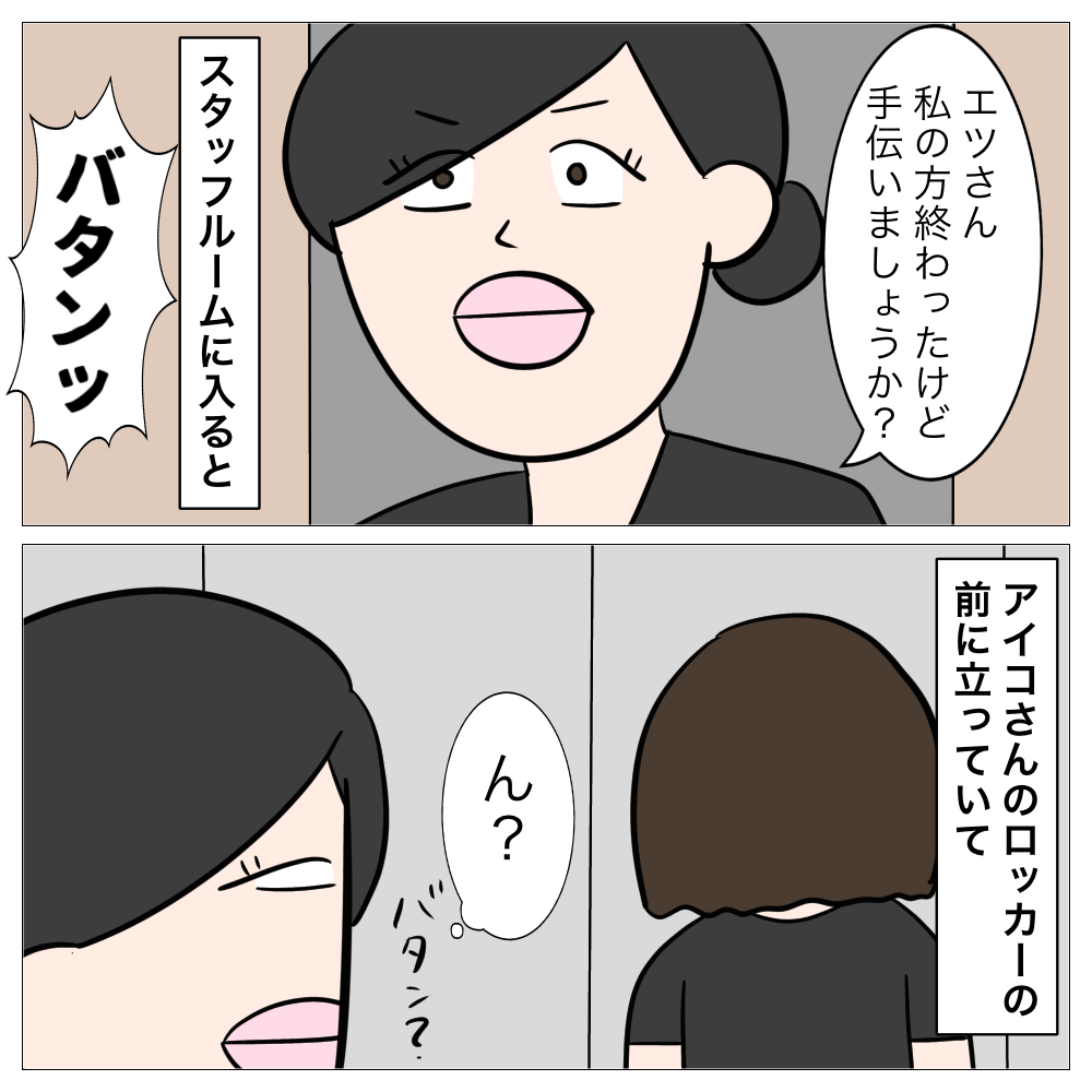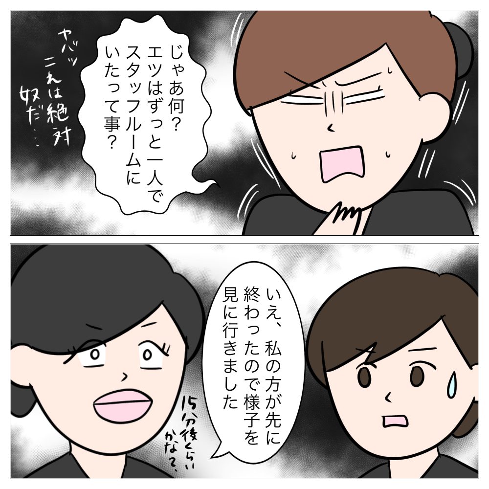 ↓前回はこちら ↓1話目はこちら 問い詰める あとがき 真犯人はミサキさん? エツが嘘ついてるのか、ミサキさんが嘘ついてるのか? 次回もお楽しみに!
