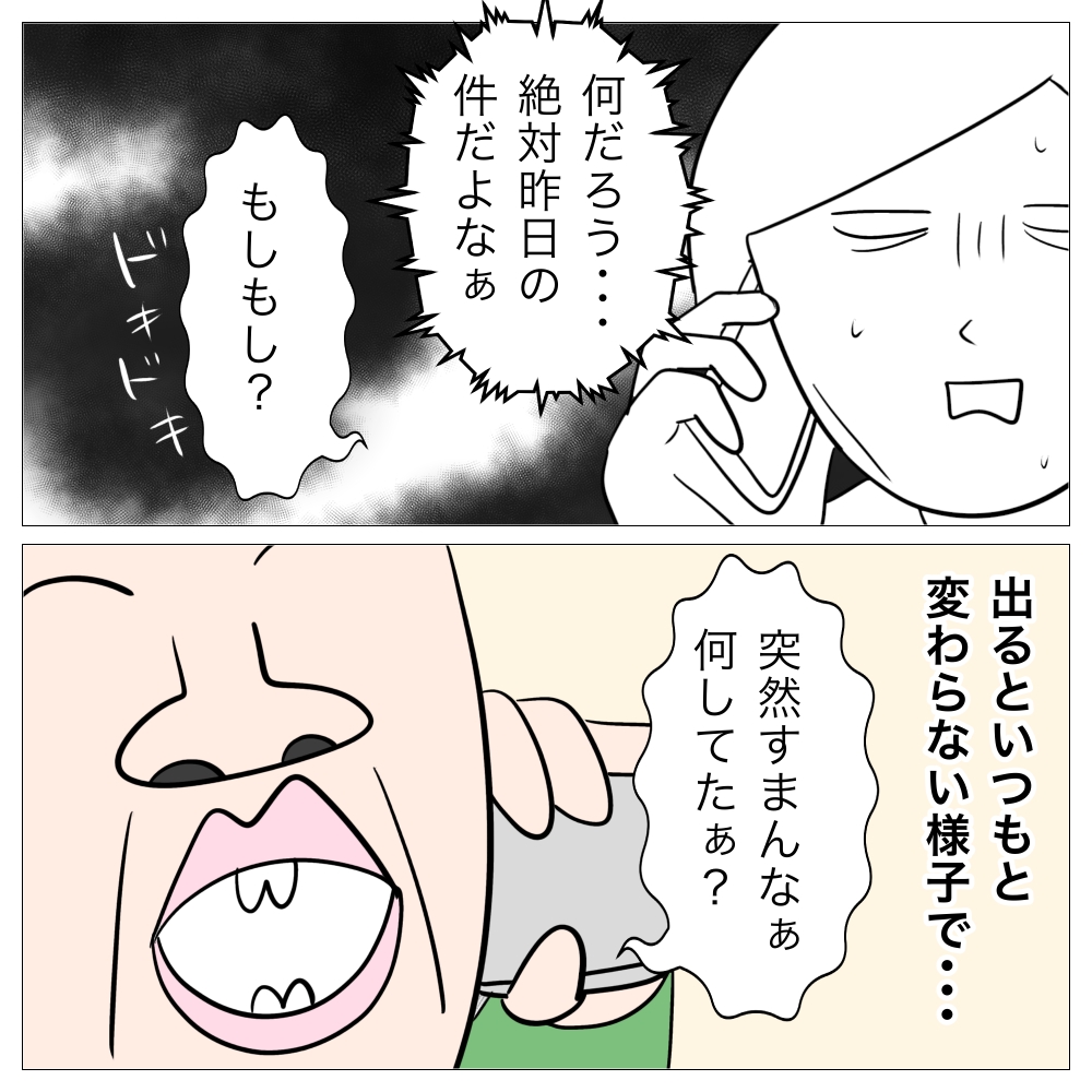 ↓前回のお話はこちら ↓1話目はこちら 穏便に・・・ あとがき 勝手な行動しておきながら自分の思い通りにいかないと気が済まないクニヒロ・・・。 彼はこの後とんでもない行動をする?! 次回もお楽しみに! 【半額クーポン対象】セットアップ ペプ...