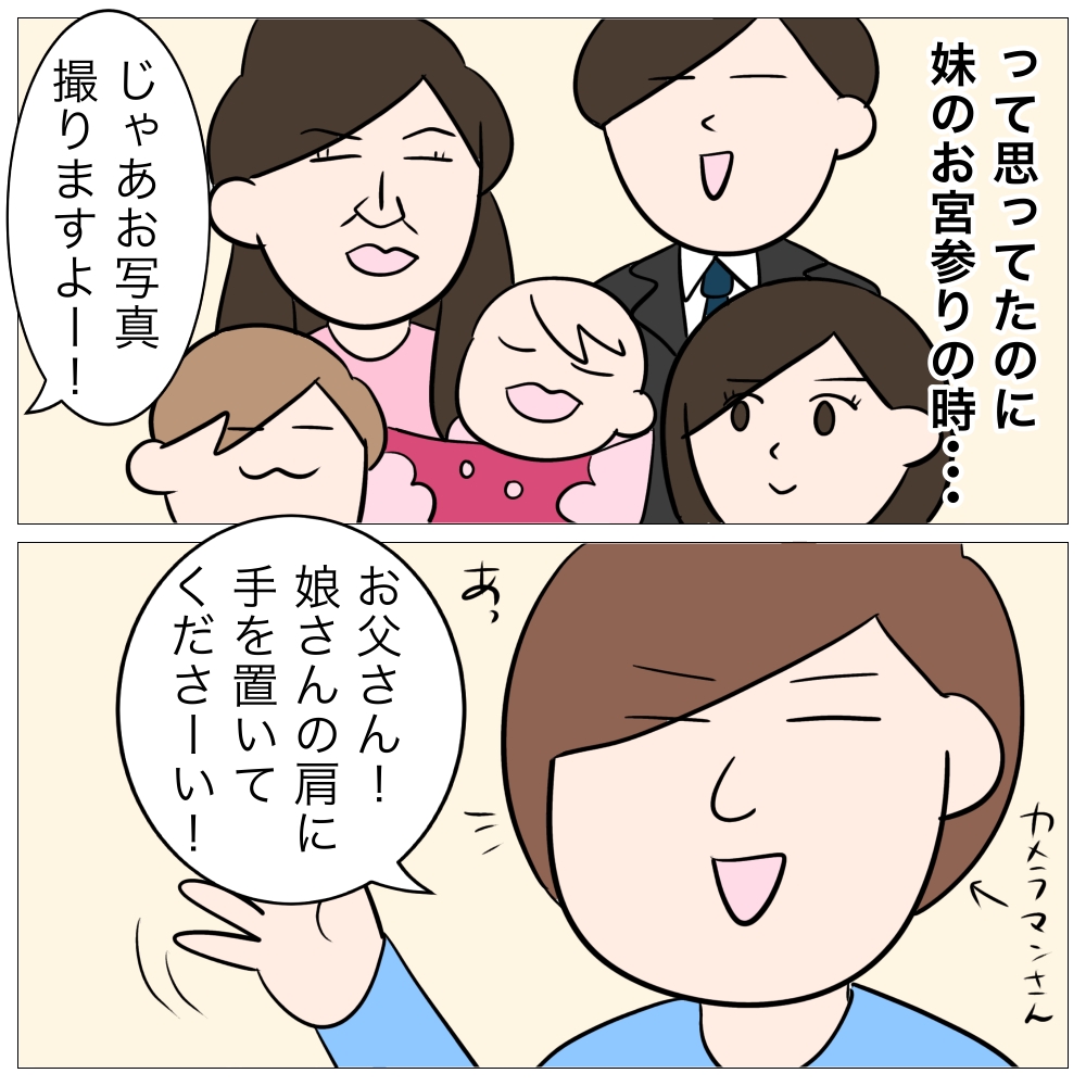 お宮参りの時、ふと父の手が肩に触れ・・・