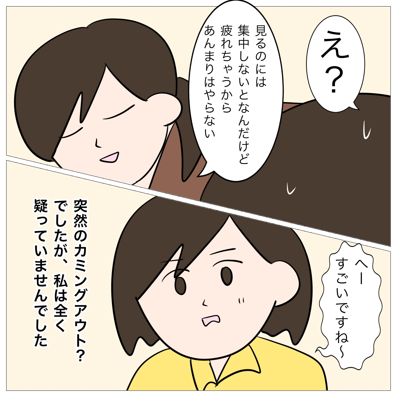 ↓前回の話はこちら ↓1話目はこちら そこまで⁈ あとがき オチなくてごめんなさい_(:3 」∠)_ 本当に彼女にはビックリしたなぁ。 同じように見える人の体験がありましたらぜひ漫画に描きたいのでお待ちしてまーす_:(´ཀ`」 ∠): 最後...